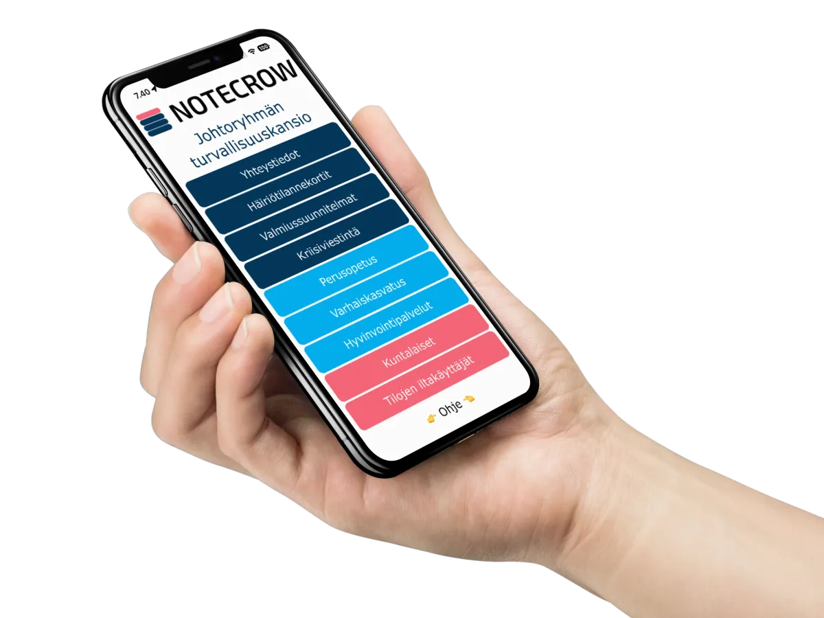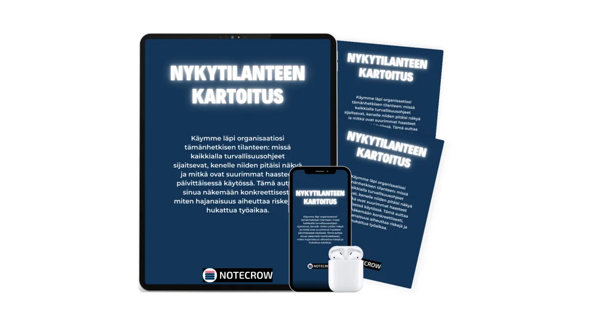 Luomme sinulle henkilökohtaiset askelmerkit, joilla voit edetä kohti selkeämpää turvallisuusohjeistusta – riippumatta siitä, päädytkö käyttämään Notecrow-turvakansiota vai jotain muuta ratkaisua.